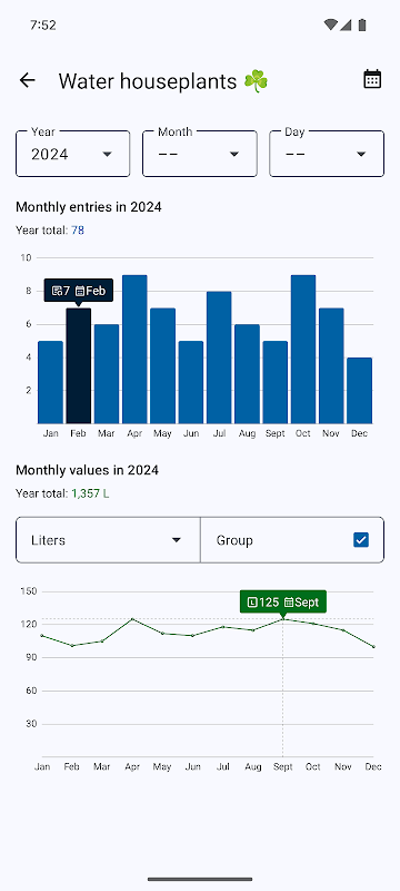 在圖表上查看您的條目如何隨時間變化。按小時、天、月或年輕鬆比較您的條目。