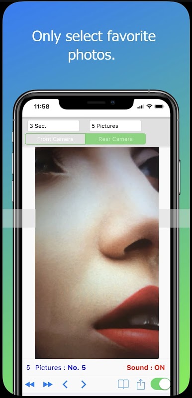 定時器自拍相機支援前置鏡頭,讓使用者設定 3、5、10、15、20 或 30 秒的定時器,連續最多可拍攝 30 張照片。此外,該應用程式會自動偵測並設定最佳的相機鏡頭像素模式,讓您輕鬆獲得高品質的照片。