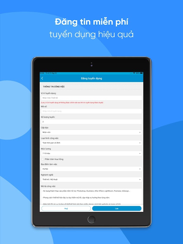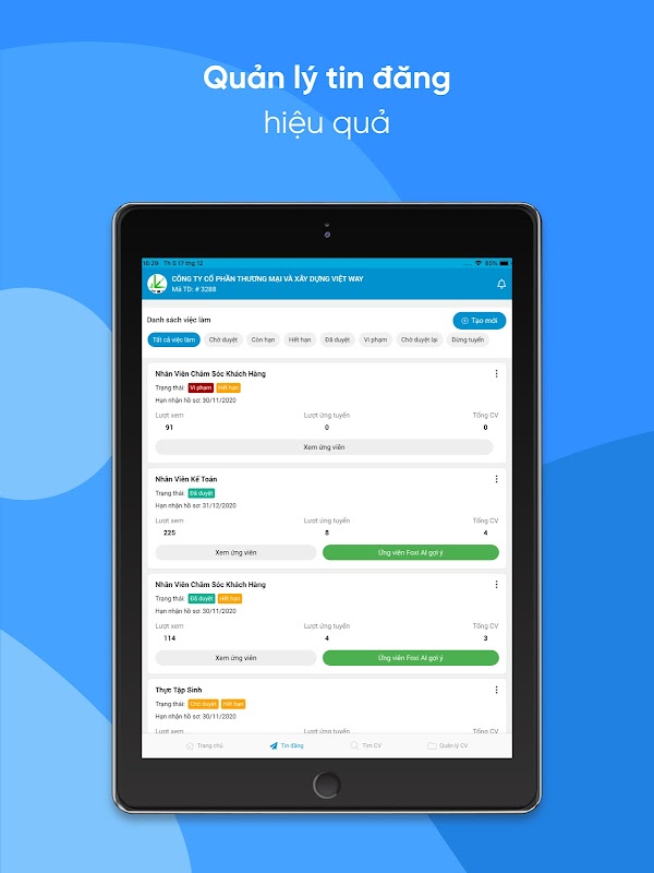 - Hàng nghìn ứng viên biết đến môi trường làm việc, văn hóa cũng như business của doanh nghiệp bạn.