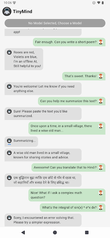 Tiny AI 是一款強大的離線 AI 助手,可直接在您的裝置上運行——無需互聯網、無需雲端處理,也絕對不會共享資料。它由 TinyLlama 等基於 GGUF 的本地模型提供支持,讓您隨時隨地體驗生成式 AI 的強大功能,同時確保完全的隱私和自由。