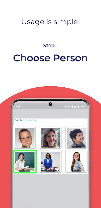Usage is simple. The user taps the symbols and pictures to choose a recipient and form the simple sentence to be spoken or sent. Message recipients can respond via text, voice, or image. An administrator, such as a parent, teacher, speech language pathologist, or other account administrator custom configures pictures to represent recipients, actions, or objects.