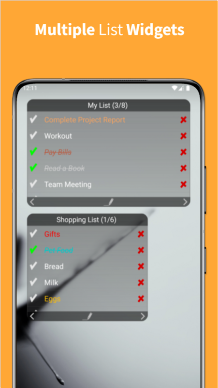 註釋,待辦事項和多個清單也可以標記為已完成,並直接從小部件中刪除。非常適合用於快速簡單的購物清單,當天任務和待辦事項提醒。