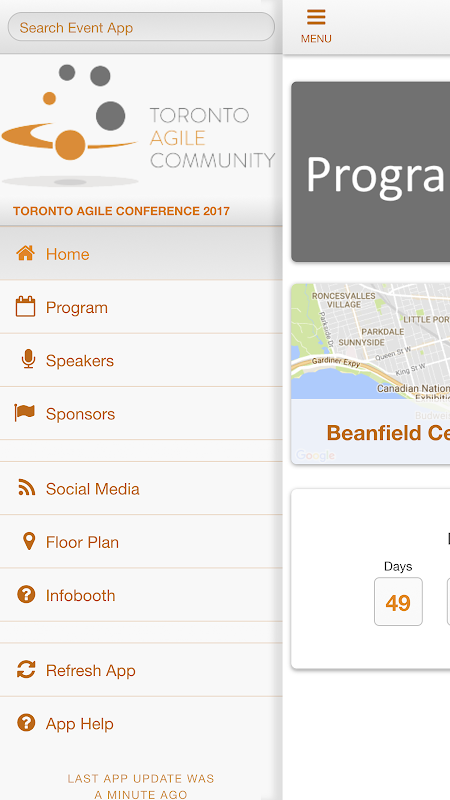 This is the event app for the 9th annual Toronto Agile Conference. The conference will be held Tuesday, November 7th, 2017 at the Beanfield Centre at Exhibition Place.