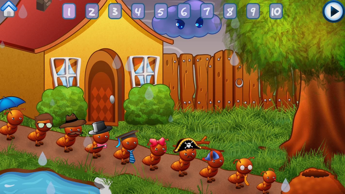 歡呼!十隻忙碌的螞蟻沿著小路前進以躲避雨水。小螞蟻帶路,表演每節經文的動作。您的孩子會喜歡輕敲螞蟻並聆聽它們所說的一切。