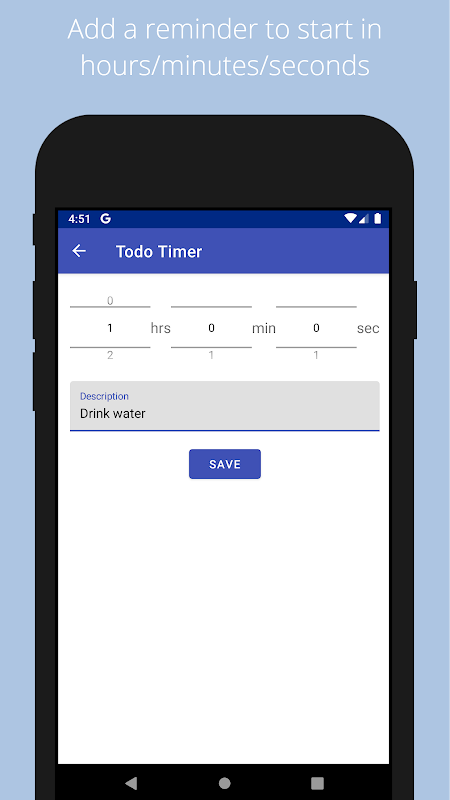 需要幫助養成健康的習慣或定期做任務嗎?是否正在尋找不是在特定日期/時間設置的提醒,而是從現在開始的小時/分鐘/秒的提醒? Todo Timer是完美的解決方案。只需設置從現在起多長時間您便會收到一條溫柔的通知,您就可以開始了!收到提醒後,您可以選擇再次啟動。