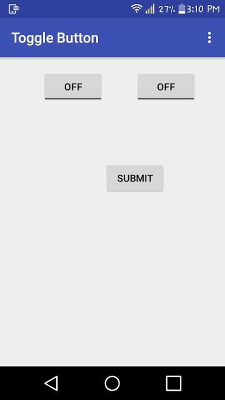 In this app you can On the toggle button Then there shows toggle button is On.When you can Off the toggle button then shows toggle button is Off.This app is designed for Toggle Button.