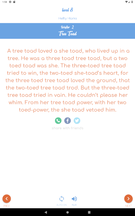 Added beautifully majestic contextual icons alongside each tongue twister to help you navigate through them seamlessly.