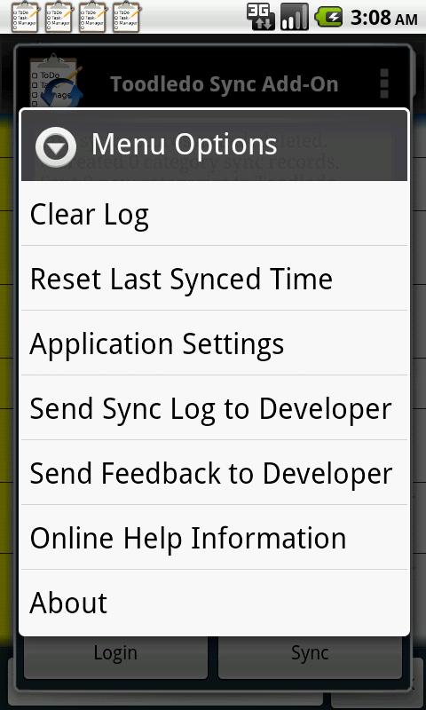 Now that you are logged in click the sync button to sync the tasks in ToDo Task Manager -Pro with the tasks on Toodledo.com.