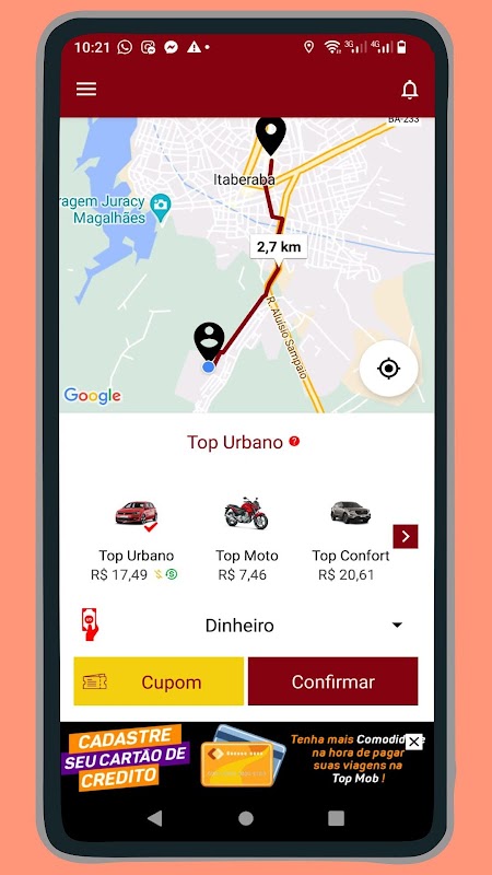 保險:所有TOP MOB驅動程序都將經過選擇過程才能進入我們的平台。除此之外,這些車還很舒適,經過檢查,並且:當然,我們會注意乘客的評估。