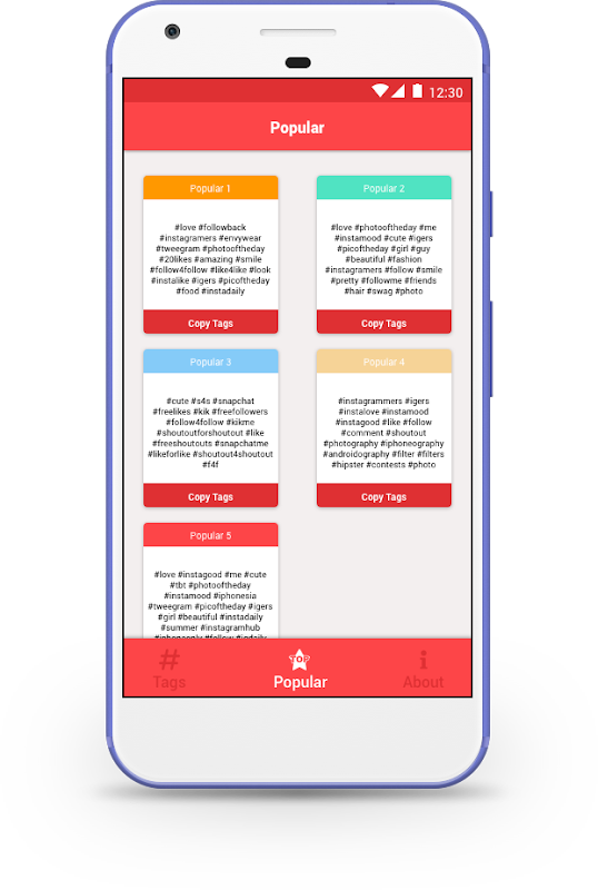 - One Tap to Copy Hashtags directly to Instagram from device keyboard.