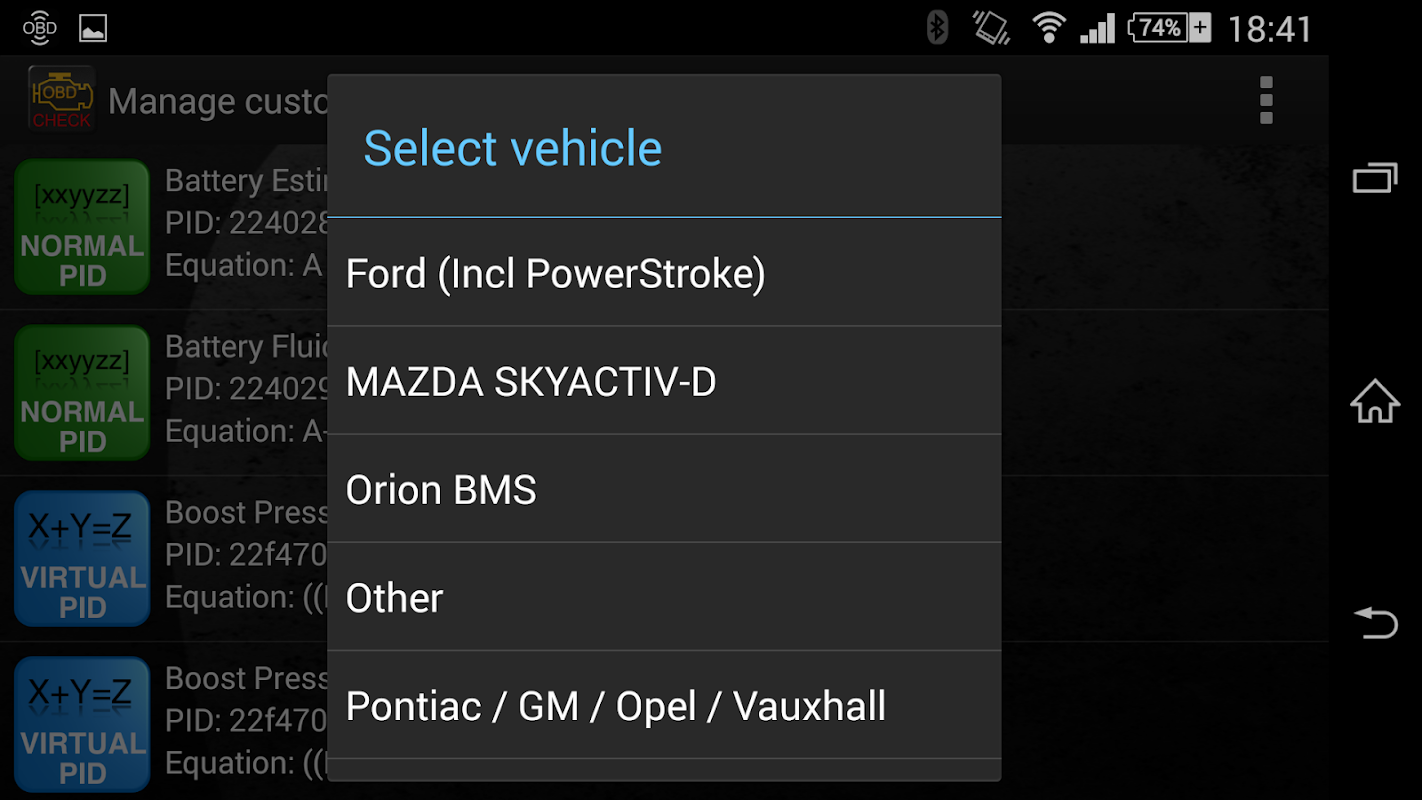 請在使用說明(4)中重新新增PID。如果您的帳戶經常被刪除,請使用本頁列出的電子郵件地址與我們聯絡。 Torque Pro 論壇 (https://torque-bhp.com/forums/?wpforumaction=viewtopic&t=7290.0) 也對此進行了報導。