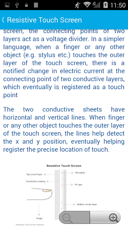 觸摸屏手勢被最廣泛使用的自動取款機(ATM),零售中的環境下,GPS系統,電腦和手機的互動展示。這種觸摸屏手勢移動應用程序可以教,並引導用戶關於類型的觸摸屏,什麼是生薑和觸摸小工具的基本原理,目標表的目標,不同的類型,可以進行WRT的屏幕和設計考慮的手勢。