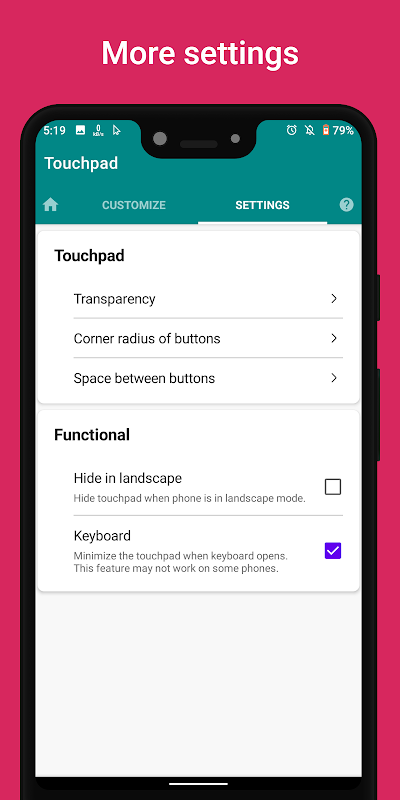 用於 Android 導航的單個操作按鈕,例如主頁、返回和最近的應用程序。這意味著您在觸摸板上擁有完整的導航欄。