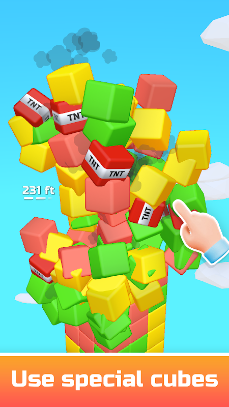 每個塔都由填滿不同顏色立方體的層組成。當您點擊立方體時,所有連接的相同顏色的區塊都會彈出並消失。但要小心!你需要提前思考,計劃你的行動並有效地清除塔樓。每一次點擊都很重要!