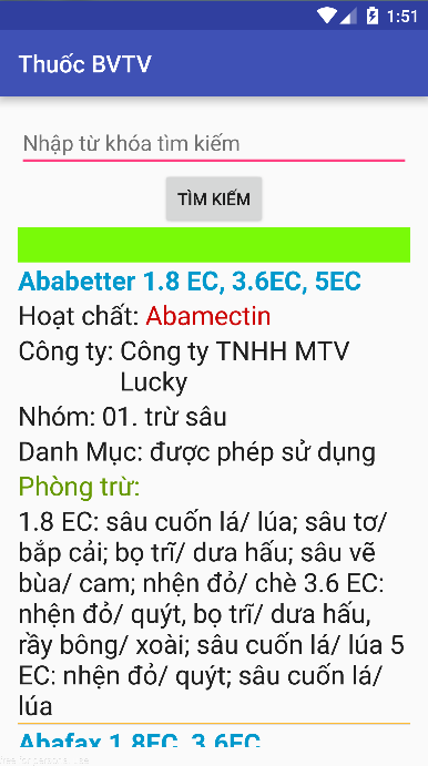 查找植物保護產品提供足夠的信息藥品名稱,活性成分,企業和預防。擁有超過3000註冊藥品在越南。適用於農民或經理,工程師的免費應用程序,學生需要查找農藥