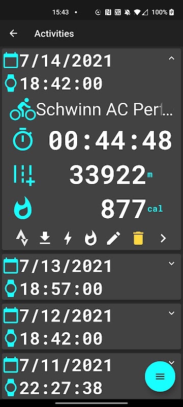 Stride calculation and upload for running, a cycling type activities