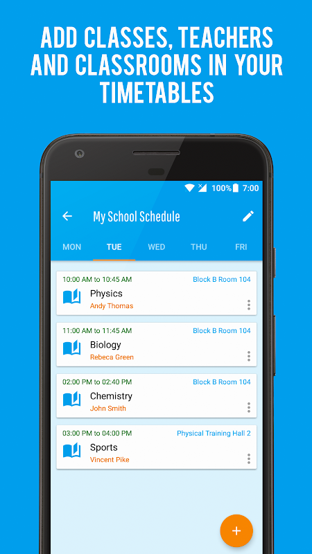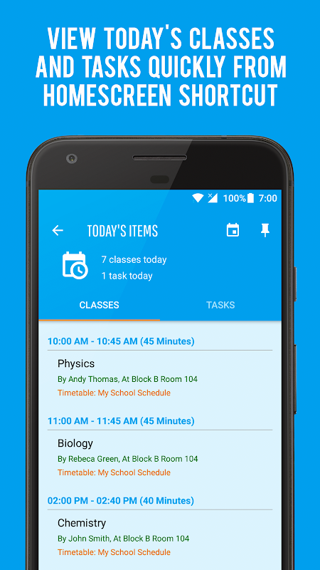 添加,編輯和組織您的時間表班,教師和教室位置。添加提醒和鬧鐘來提醒你即將舉行的課程。