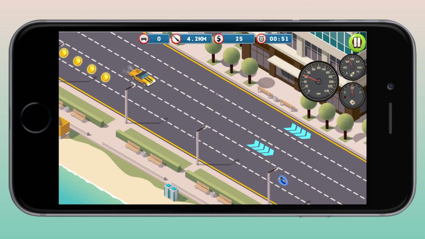 In this game you have to drive your car in the middle of the traffic so you can make the score and complete the challenge and also watch out for the incoming vehicles and many other obstacles which can make your car crash collect many powerups to boost the speed and coins!