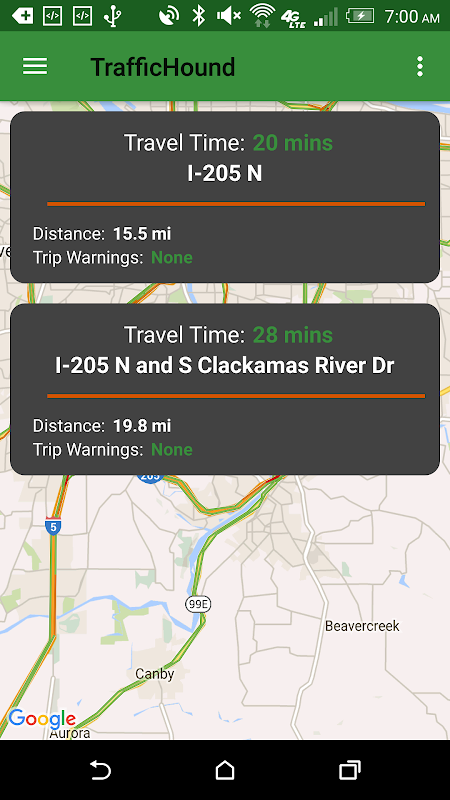 With another, you can set your commute. Save it - and your regular commute is only clicks away with travel time, distance & trip warnings.