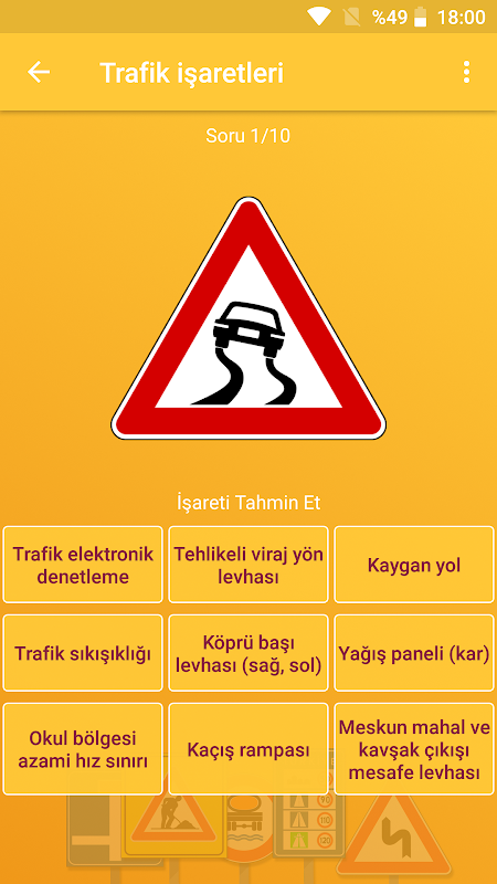 這是對土耳其道路標誌的考驗。在此應用程序中,您可以通過一種有趣的方式學習交通標誌。該考試僅對計劃獲得駕駛執照的初學者和有經驗的駕駛員刷新交通代碼的記憶有用。