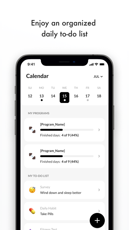 從那裡,滑過一個選項卡到健身日曆,它將作為您的日常鍛煉計劃。當您的教練為您分配健身計劃、要求您稱重、跟踪您的日常營養宏量或要求提供進度照片時 - 您會在這裡找到待辦事項列表。單擊當天的鍛煉將帶您進入健身計劃的第一個鍛煉。