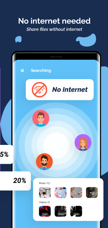 Share Apps: file transfer, Transfer data has an exquisite feature through which user perform file share anywhere and at any place. File sender app is appropriate for mobile data transfer as it sends and receives files with high speed. User can personalize wallpaper, GIF and stickers in these amazing transfer apps as well can make photo transfer. Go share and transfer photo to your friend and family regardless of its size as there is no constrains of format and volume of data you want to share.
