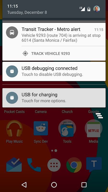 Transit Tracker - LA allows you to define alerts for Metro routes and stops; get a notification when a vehicle on a specific route is approaching or arriving at a particular stop.