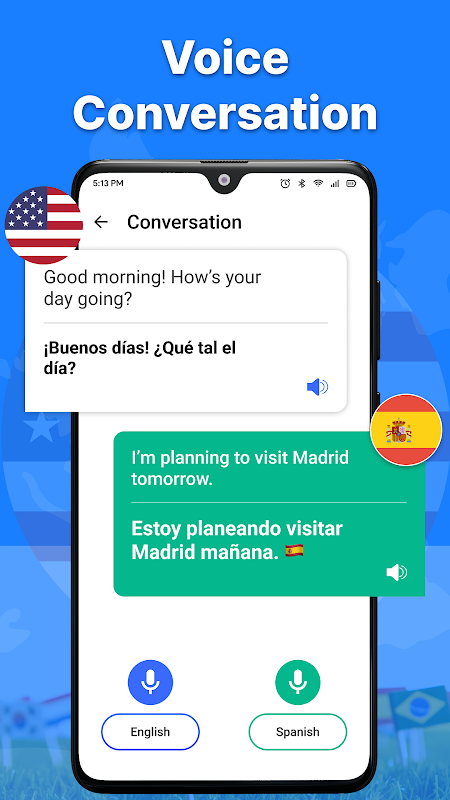 Speak & Translate Languages is a language translator app that translates text or voice into the language you prefer. The photo translator feature in the language voice translator app allows you to translate image text into different languages. It also provides the features of voice translator, text translator, conversation translator, AI tutor and AI assistance. You can learn Spanish and also find words’ meaning with the Talk & Translate languages app