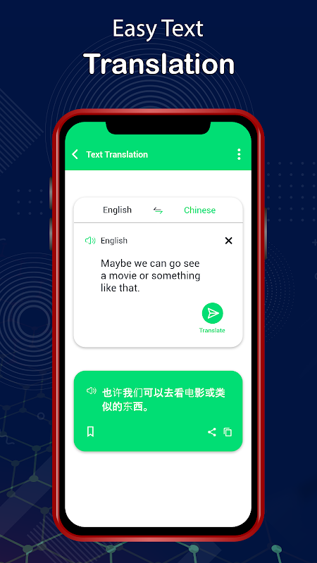 文字翻譯器所有語言文字翻譯是單詞輸入法,它還具有文本複制粘貼選項,您可以復制此翻譯內容並與其他設備共享。將翻譯另存為書籤。聽翻譯文本和語音。只需按揚聲器按鈕即可收聽文本語音。語音翻譯器可以將文本翻譯成語音,例如traductor ingles或任何100種語言,並可以輕鬆地與外國人交流。使用簡單的拖放選項,在屏幕上翻譯應用程序,查找任何句子的含義。