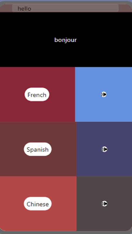 它將翻譯任何單詞或短語,並具有文本到語音的功能。一旦您在文本輸入中輸入文本,它就會被翻譯。它由三種不同的語言組成:西班牙語、中文和法語。