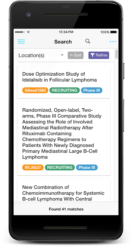 Find clinical trials based on diseases and hospitals that you might be able to participate in. Once you find trials for a given disease, refine your matches based on trial phase, type, location. If you have found a trial of interest, contact the relevant person - and off you go!
