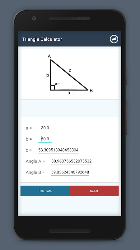 Triangle Calculator Free is a calculator designed to give the two unknown factors in a right triangle, assuming two factors are known. Again, this right triangle calculator works when you fill in 2 fields in the triangle angles, or the triangle sides.