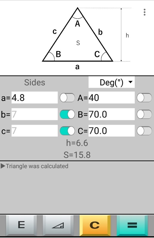 按輸入框旁邊的按鈕固定輸入值,固定值無法編輯或清除,此功能可以更輕鬆地連續計算特定三角形。
