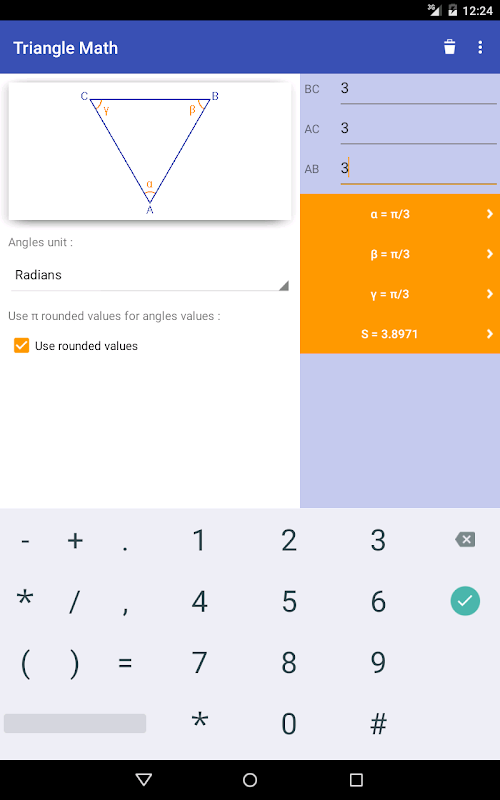 三角形數學是一個可以求解任何類型三角形的應用程式。只需輸入至少 3 個參數(三角形邊長或角度)即可自動顯示已求解的三角形和所有計算值!