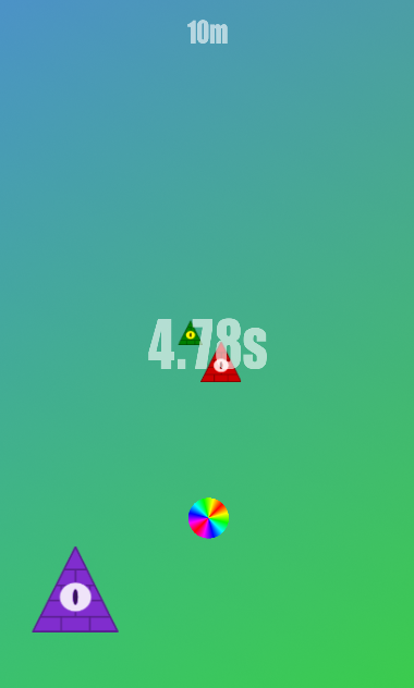 - Illuminati triangles will appear on the screen, lila and red will take time away and green and blue will save you time.