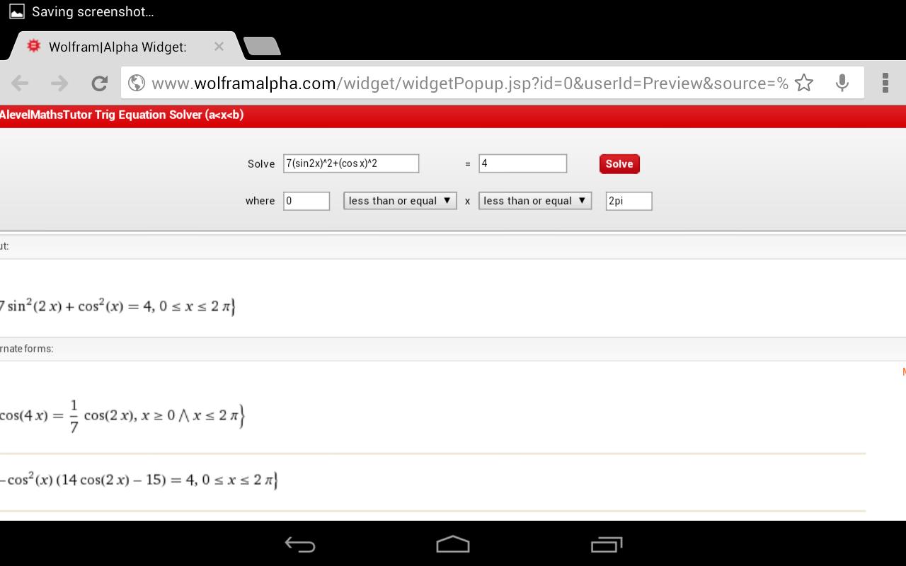 There's a host of other useful tools as well - trig equation solvers both general and in a specified range and a trig identities solver which provides a number of alternatives to the expression entered, So if you have problems of your own that need checking then look no further.