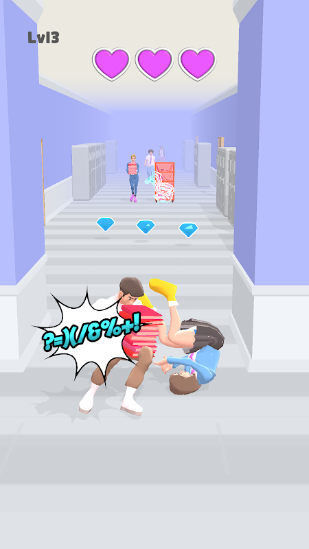 Tackle all the school population while avoiding the obstacles. Try not to miss more than 3 people to win the level!