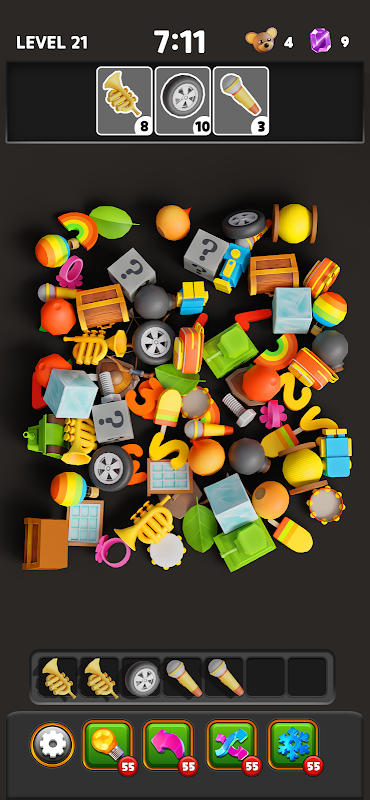 透過配對三個 3D 物件來清除棋盤。每個等級都會提供新的挑戰,難度越來越大,種類也越來越多