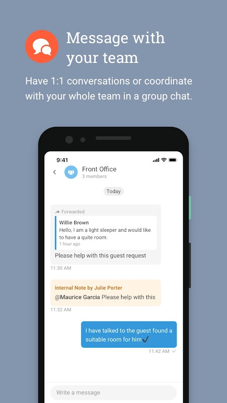 * 在群聊中與您的整個團隊進行 1 對 1 對話或協調。
