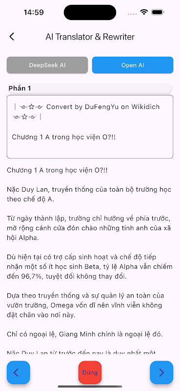 你不習慣看中越故事嗎?該應用程式支援使用AI將中越語轉換為純越南語,幫助您完全理解劇情,而不會被古名稱或術語所困惑。