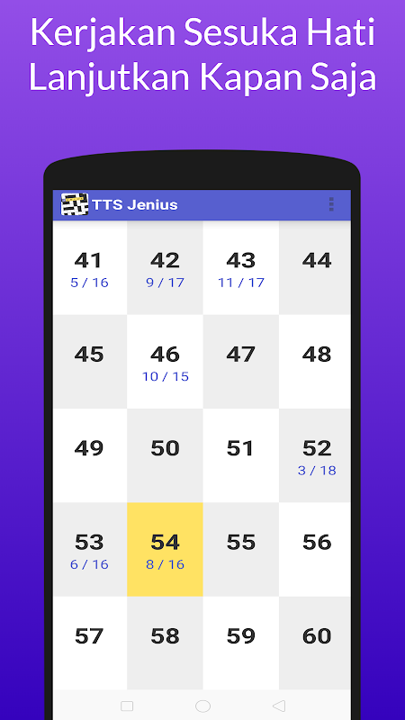 Dibuat tanpa sistem level, kerjakan ratusan TTS yang telah tersedia, berhenti dan lanjutkan mengerjakan kapan saja sesukamu. Cocok untuk mengisi waktu luang Anda!