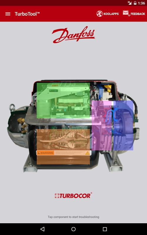 丹佛斯 TurboTool®应用程序使现场检修技术人员可以轻松为丹佛斯 Turbocor 压缩机排除故障。现场检修技术人员可以利用此应用程序确定症状、找到可能的原因、然后根据建议的措施进行补救。即时访问 TurboTool®应用程序的压缩机故障排除和快速参考图表。