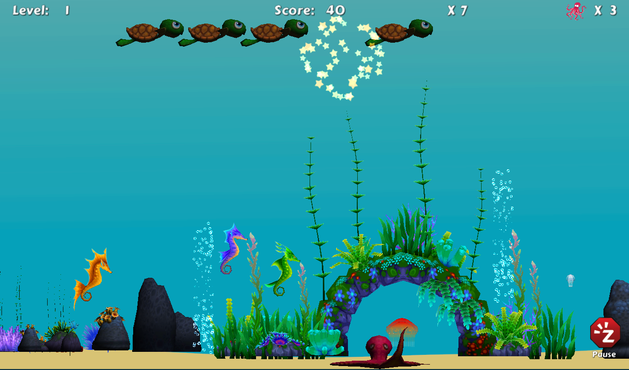 海龜已決定接管海底水族世界。無畏Octoremus已決定反擊!為了阻止海龜,Octoremus必須墨水的海龜,這神奇地運回來給自己的巢穴。當然,龜,可以反擊。龜侵略者是一個有趣的原因和結果的遊戲,附加功能,以幫助提高運動技能。覺得它太容易?挑戰自己的最高難度級別!