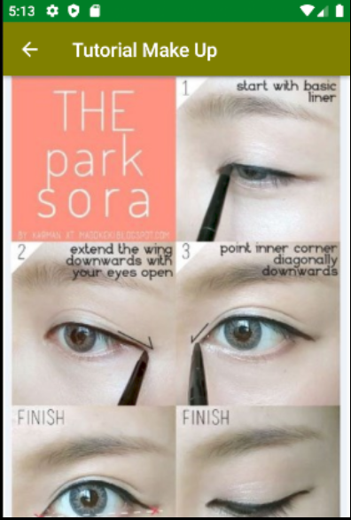 Aplikasi Tutorial Make Up ini sudah dirancang bagi anda yang suka bersolek diri. Ada lebih dari ratusan contoh tutorial Make Up bergambar yagn dapat anda gunakan. Mulai dari contoh Make Up Korea hingga Make Up Professional.