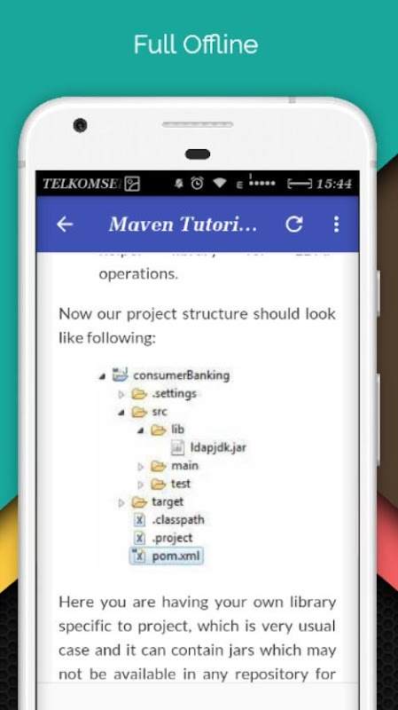 Tutorials for Maven Offline is a complete application for those of you who want to learn Maven easily and for free. There are dozens and even hundreds of Maven tutorials starting to base for beginners to advanced. All these tutorials you can read offline without the need to connect to the internet or mobile data.