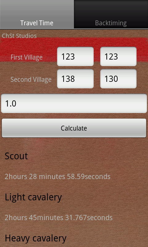 Diese ursprünglich für den Eigenbedarf entwickelte App bietet die Möglichkeit Laufzeiten zwischen zwei Dörfern im Browsergame "Die Stämme" zu berechnen.