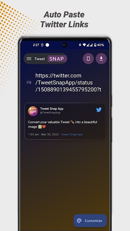 APKPure 使用簽章驗證功能,確保為您提供無病毒的 Tweet Snap: Make Tweet Awesome APK 下載。
