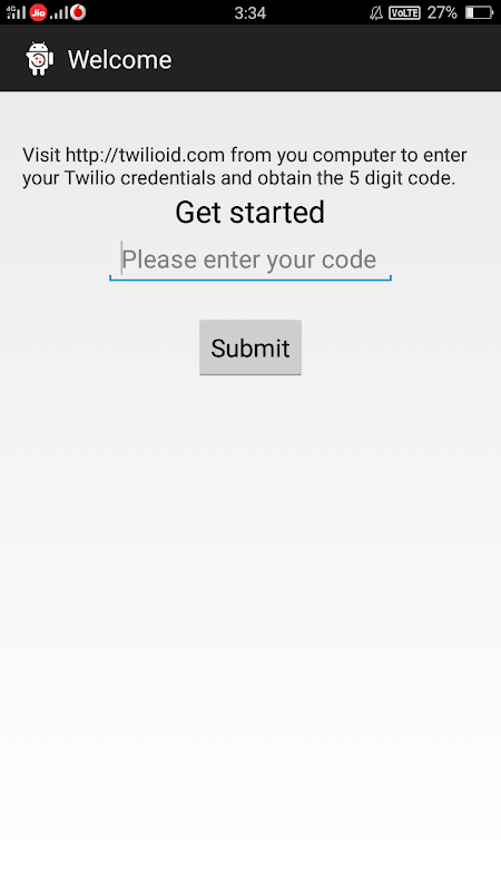 Obtain the code from twilioid.com to link this app to your Twilio account.