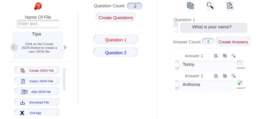 從您的裝置輕鬆輸入問題和答案並以 JSON 格式儲存。