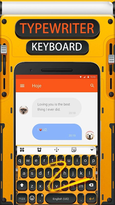 This Typewriter Keyboard Theme uses Facemoji Keyboard Facemoji Keyboard + GIFS. Please click the link to have it installed first.